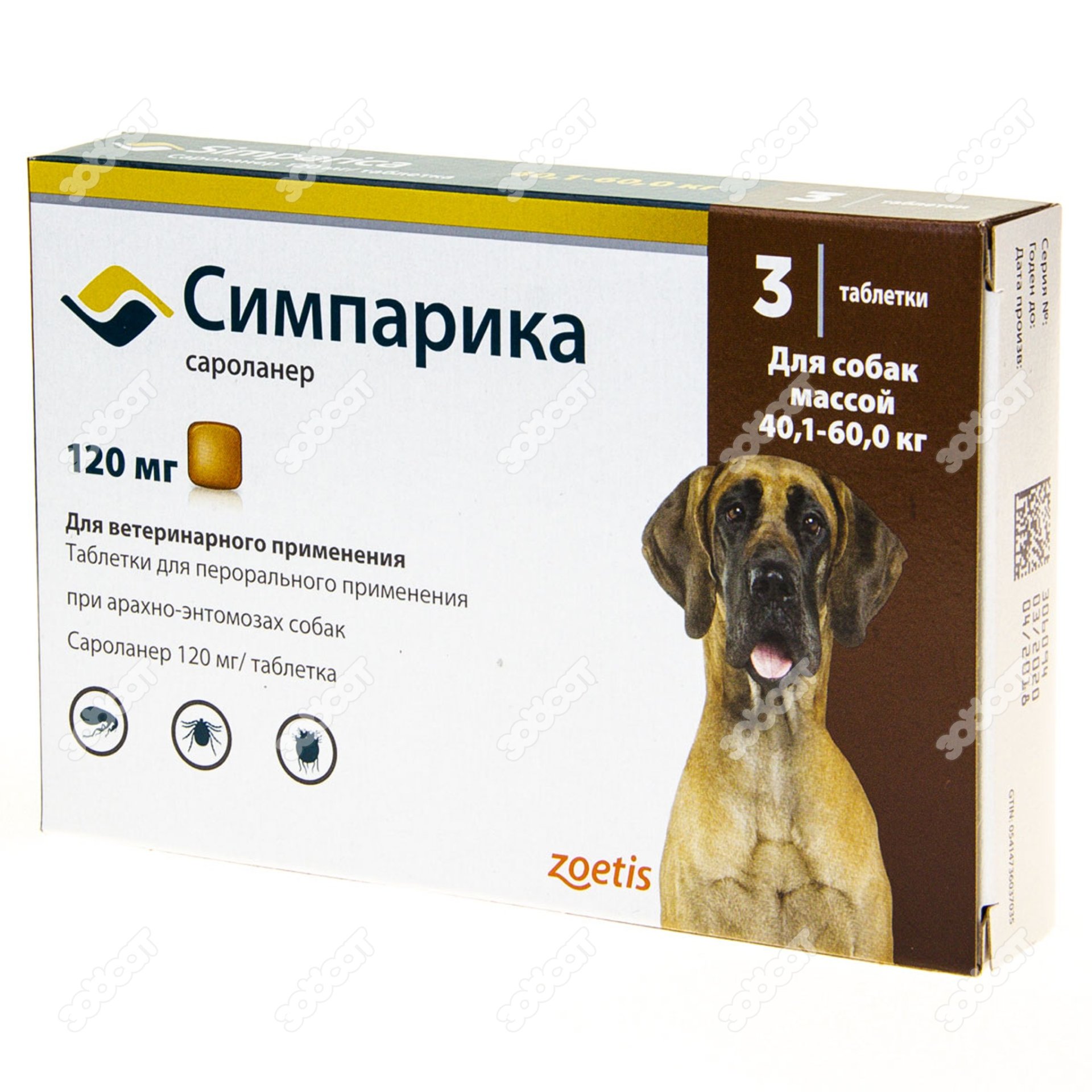Ветеринарные препаратыСимпарика, табл 120 мг (уп. 3 табл.) от 40-60 кг.
